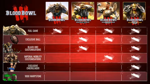 - 12 factions to choose from, including the Black Orcs, Imperial Nobility, Old World Alliance and the Chaos Renegades for the first time in a Blood Bowl video game