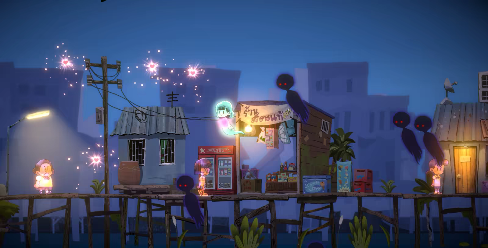 Dancing with Ghosts is a wholesome, interactive-narrative with a compelling, heartfelt story full of charm and humor. The interactive narrative is set within the chill, sim-type gameplay of a living village. Players play the role of Mai, a 15 year old Thai girl who feels lost and overcome with guilt because of the death of her parents. Mai meets an 11 year old ghost, who has lost her memory and who is trapped in this world.