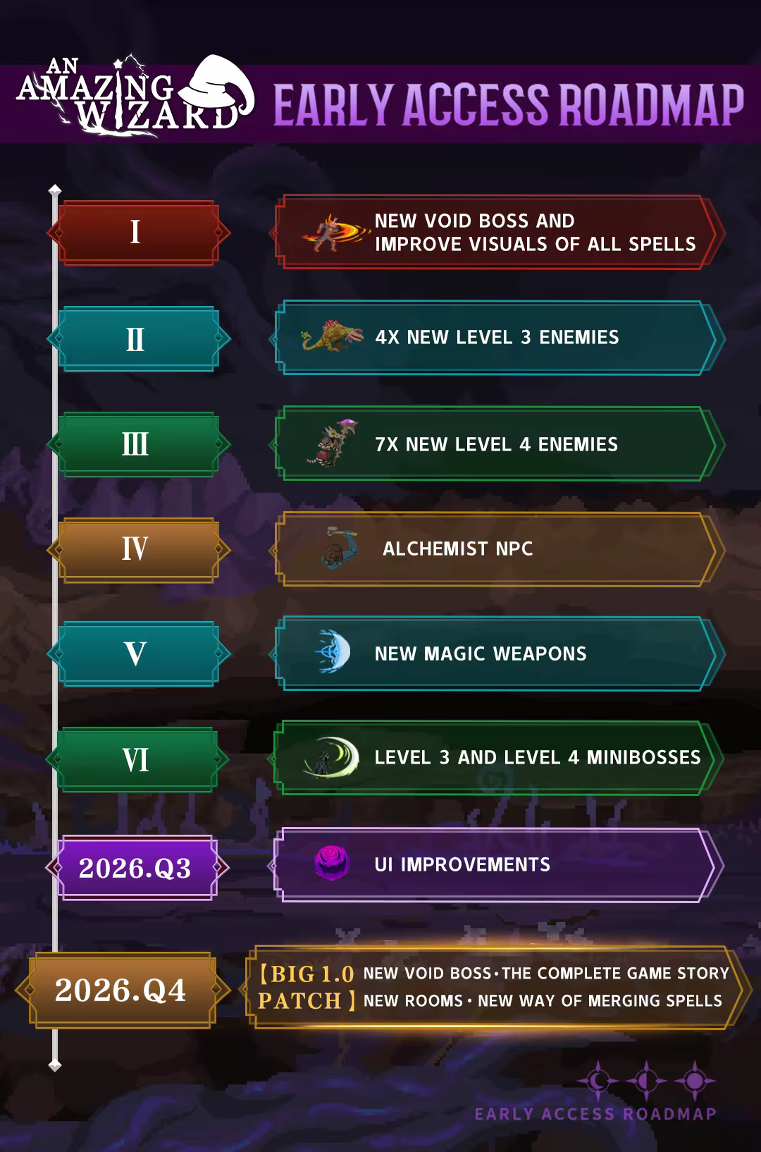 Myriad of builds to have! Choose from 7 unique elements, mix 100+ spells with 200+ enchantments! 200+ Artifacts and Perks will add unexpected twists to your run. Be a SUMMONER, MELEE BRAWLER, or THROW FIREBALLS with a boomerang effect.
