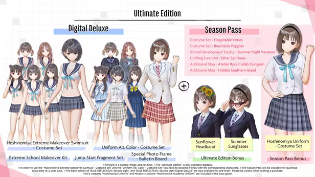 Correction: An error existed in the description for the "Hoshinomiya Extreme Makeover Swimsuit - Costume Set". We apologize for any inconvenience. Please note that Ao's costume "Hoshinomiya Extreme Makeover Swimsuit" is included in the main game.