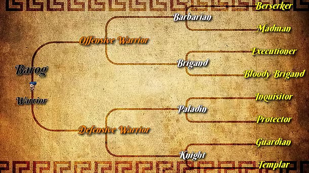 Specialization choices that completely change a hero's gameplay. If you take the warrior from the group, he can end his career as a Berserker or as a Guardian. In the first case, he will strike harder and harder as he loses life while in the second case, he will take care of protecting the group with defensive skills.