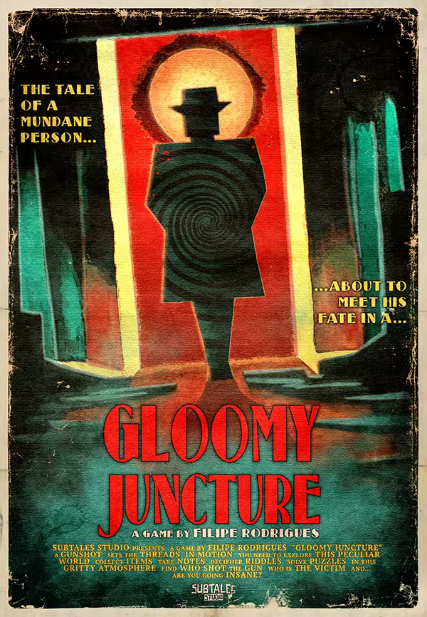Gloomy Juncture is inspired by neo-noir films, psychological dramas, weird B-movies, the works of Hitchcock, Lynch, Aronofsky, and European horror, blending a cinematic narrative experience with hardcore gameplay reminiscent of '90s adventures. Exploring themes of obsession, unease, and hopelessness.