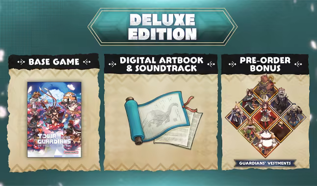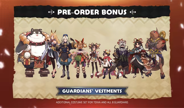 Pre-order now to receive the Guardians' Vestments Costume Set, which grants additional costumes for Towa and all 8 Guardians.