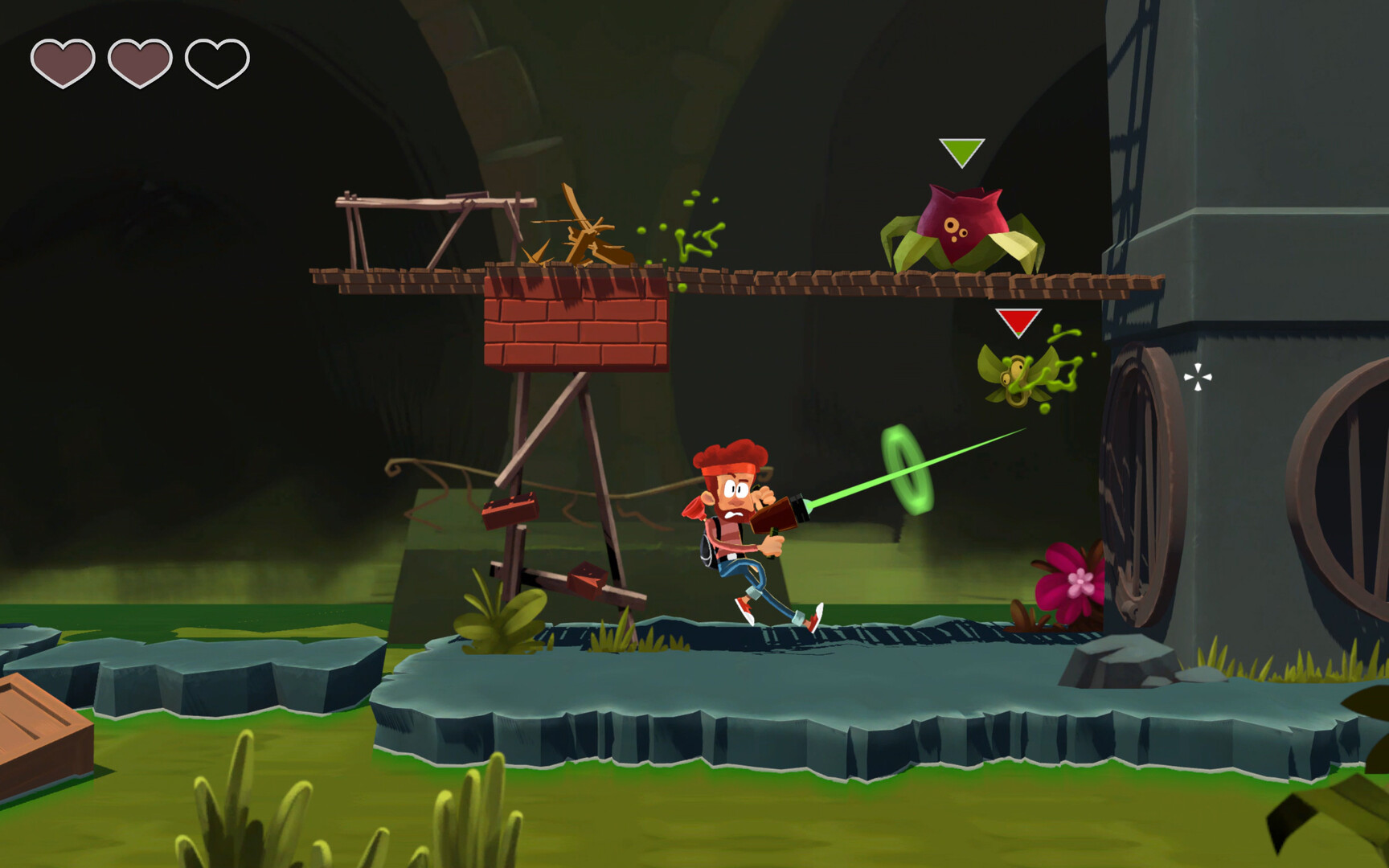 Boo! is a 2.5D side-scrolling shoot 'em up platformer set in a vibrant cartoon world… that’s slowly being devoured by a green apocalypse.