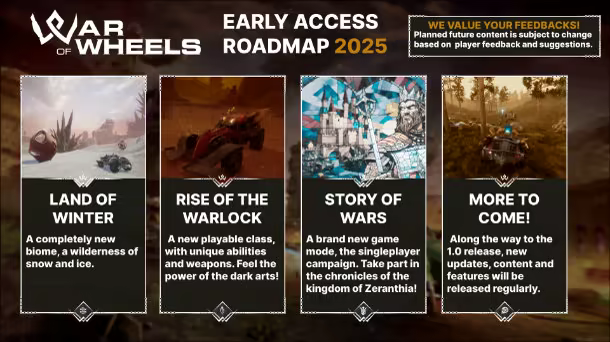 [h1]Fast, Fun, and Full of Personality[/h1] [b]A blast of [i]medievalpunk[/i] adrenaline![/b] [i]War of Wheels[/i] mixes magic, engines, and chaos in fast-paces, arena-style battles. [b]Each class feels unique[/b], the action is [b]intense[/b], and the style is [i]refreshingly original[/i]. [b]Already a ton of fun in Early Access[/b], [i]I'd absolutely recommend it[/i] to anyone who loves [b]creative, skill-based combat with a twist![/b]
