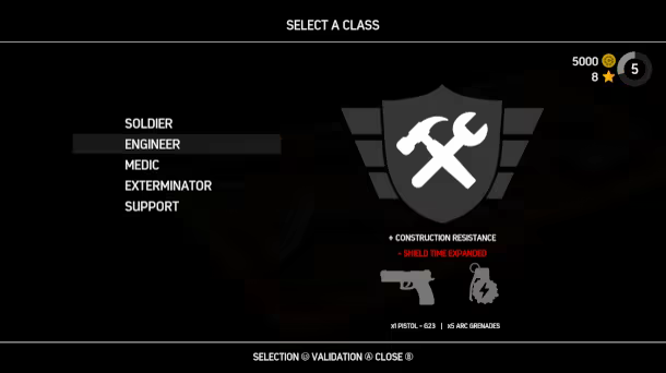 In 3XTINCTION Cooperation is key to survival, choose between 5 different class with unique skills and equipments.