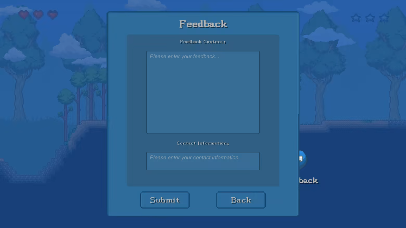 An anonymous feedback tool is built into the game.