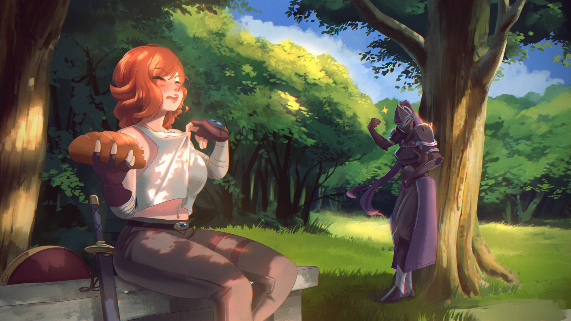 This is a super cute VN that also comes with a whole game! All the art and character models are adorable and the story is a really wholesome fantasy adventure with a huge cast. The writing is funny and sweet and there is a ton of worldbuilding. I think it's connected to the dev's other game Unyielding which I haven't played but I definitely want to try now! The game is pretty hard. There is a LOT of stuff to learn and I think the learning curve is kinda steep. I think it would be great if you could get hints in combat or even skip fights because I really want to progress the story but I get stuck for a long time on fights! There is also no tutorial in arcade mode so make sure you start with story.