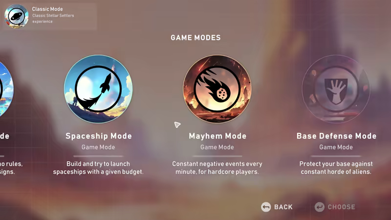 Stellar Settlers features 5 different game modes: Morph the gameplay depending on your preferences. Do you want an extra chill experience with no negative events? Or do you want to build crazy spaceship builds and launch them? Unlimited resources?