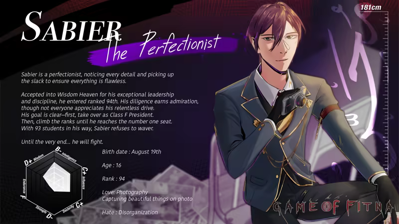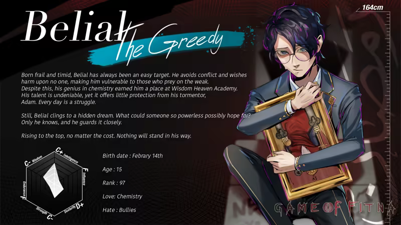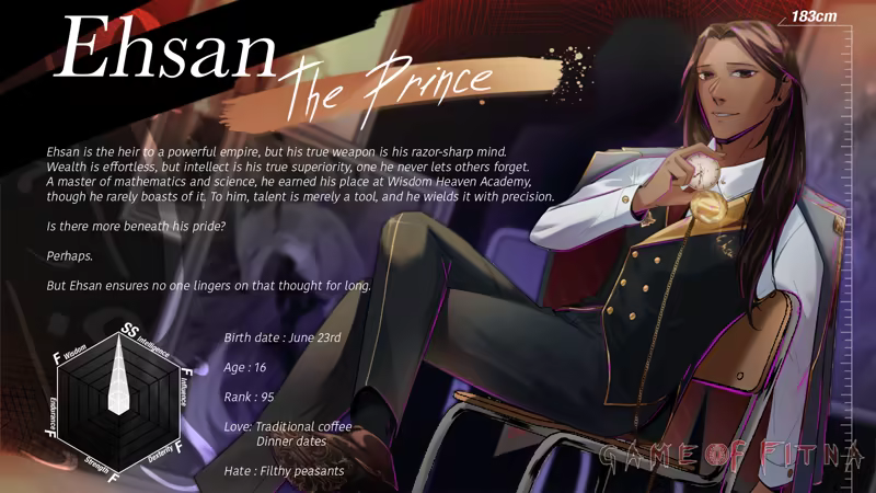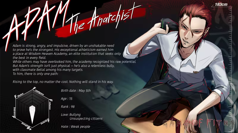 Game of Fitna: Vol 1 takes place in 2030 at Preisotus High School – Wisdom Heaven, an elite academy where only the best can attend.