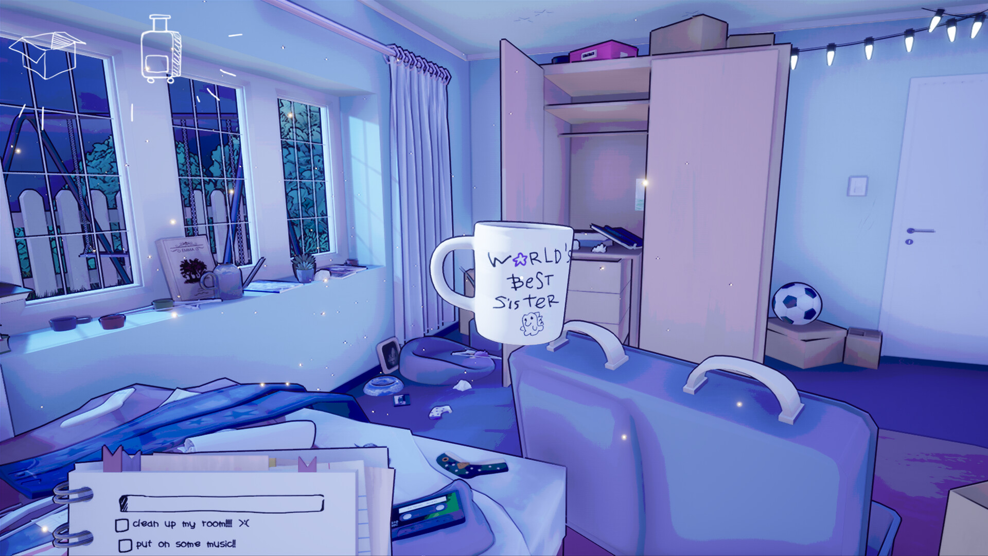 Teenage love, first losses, and notes from friends are scattered in the corners: explore the details of the heroine's life, pack up the life you will take with you, and say goodbye - if you can.