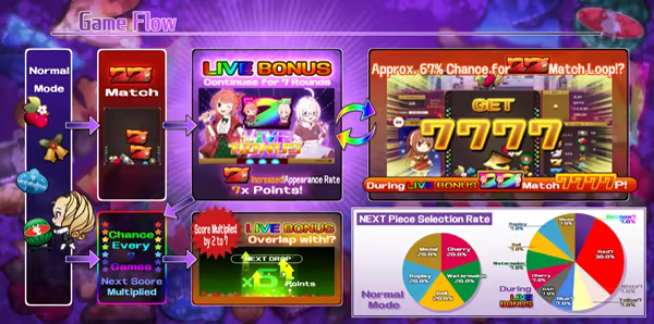 Combine replays to make bells, bells to make watermelons… and finally, stick red sevens together to aim for the rainbow seven!