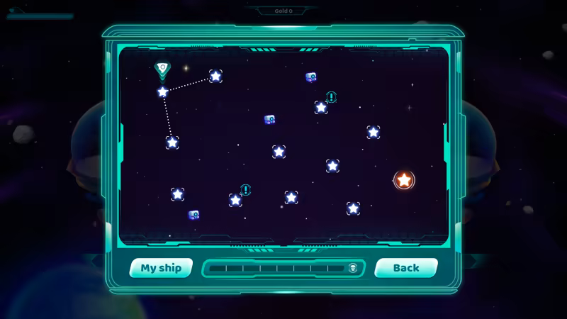 The game is split into 4 stages. Each stage has a procedurally generated star system.