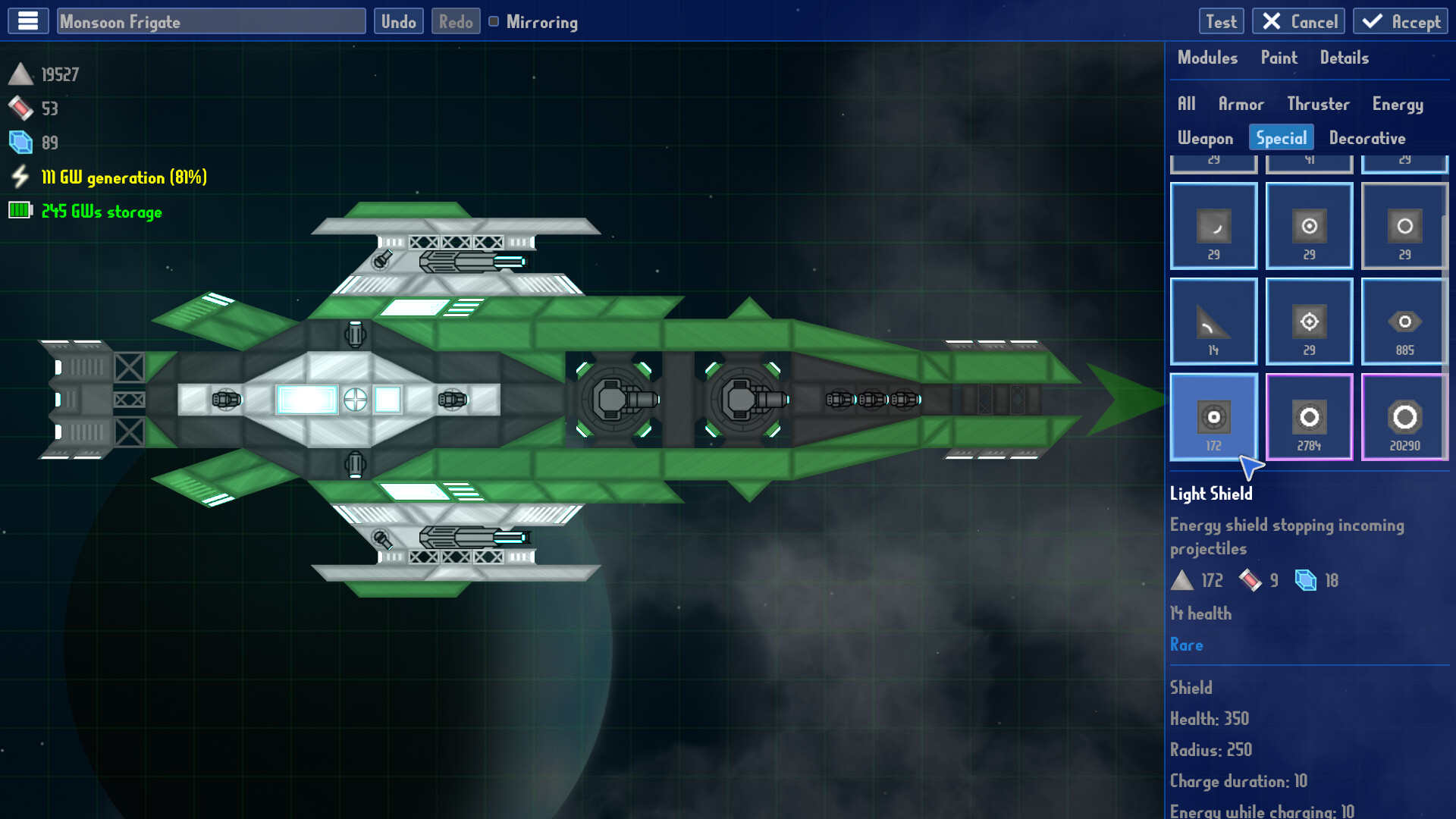 Design your ship by easily snapping modules into place. Create anything from a nimble fighter to a slow armored juggernaut, balancing thrusters, armor, weapons and energy systems placement.