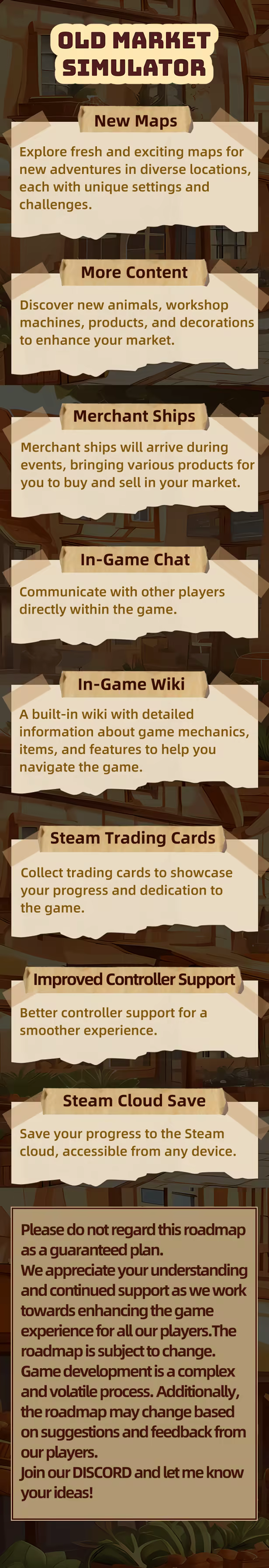 Grab your friends and start your journey in Old Market Simulator today! Don't forget to share your feedback in the discussions and feel free to join our Discord channel, where we listen to you to make the game more fun!