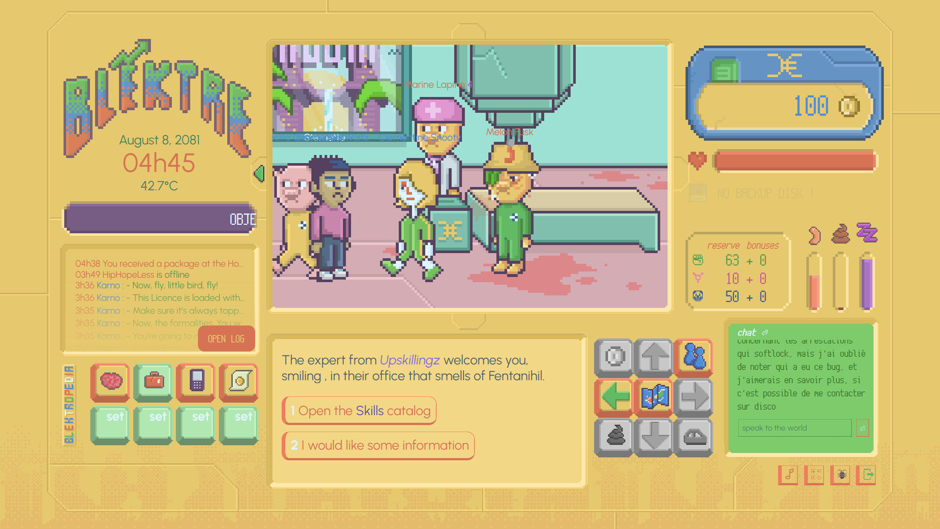 In this vision of a decaying world, happiness is measured by owning a state-of-the-art portable air conditioner. Build your home, your businesses, your prestige, and your fortune until you become the mayor of the city and enforce your own laws. In Blêktre 2081, every role — mayor, police officer, dealer, DJ, shopkeeper… — is permanently held by a player until replaced by another.