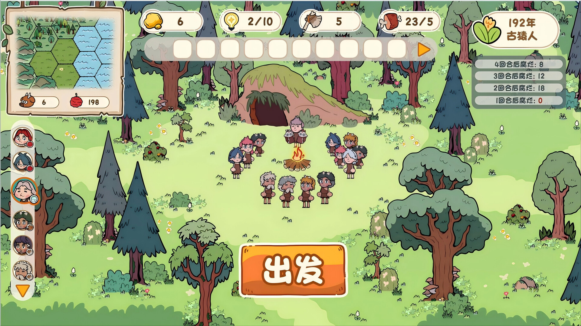 In Wilderness and Evolution, you will lead a tribe of primitive humans starting from the age of ape-men, embarking on a cross-generational journey of survival and evolution through a perilous world. Assign tribe members to gather, craft, hunt, migrate, and pray as you guide them through harsh environments, fending off wild beasts, natural disasters, and plagues. Collect inventions and evolution points to unlock new tools, abilities, and technologies, pushing your tribe toward the Homo sapiens era — or even into fantastical civilizations beyond.