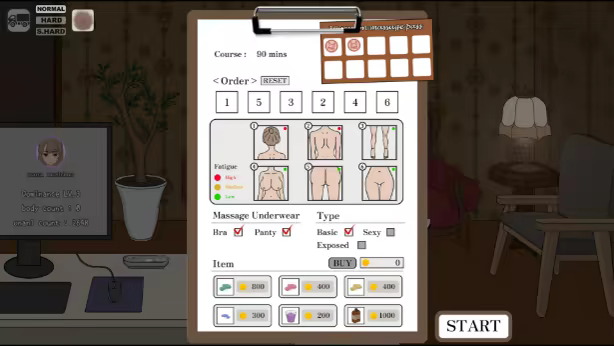 • Select massage areas from the heroine's profile chart.