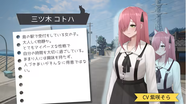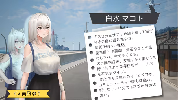 You will become a white cat living on the cat island and assist Makoto in her investigation of the "mysteries hidden on the island."