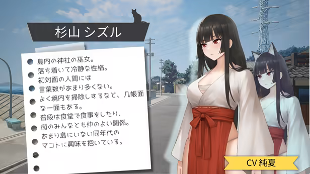 A mother and child running a diner, a shrine maiden, a receptionist at the tourist information center, and other heroines with distinct personalities will assist with the investigation.