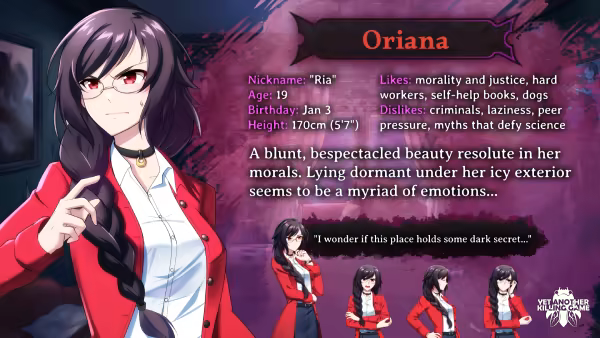 Inspired by popular mystery adventure game series such as Ace Attorney, Danganronpa, and Zero Escape, YAKG's gameplay offers a mix of immersive dialogue branches, point-and-click room investigations, and some mystery solving--if you can keep everyone from killing each other!