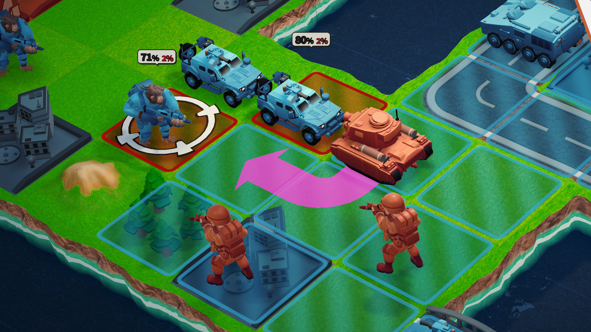 Fight in fun, turn-based battles on a grid. Take back powerful items from enemies. Play a story mode with hard missions and cool surprises. Use different units with special skills. Change your plan depending on the land. Easy to learn, fun to master!
