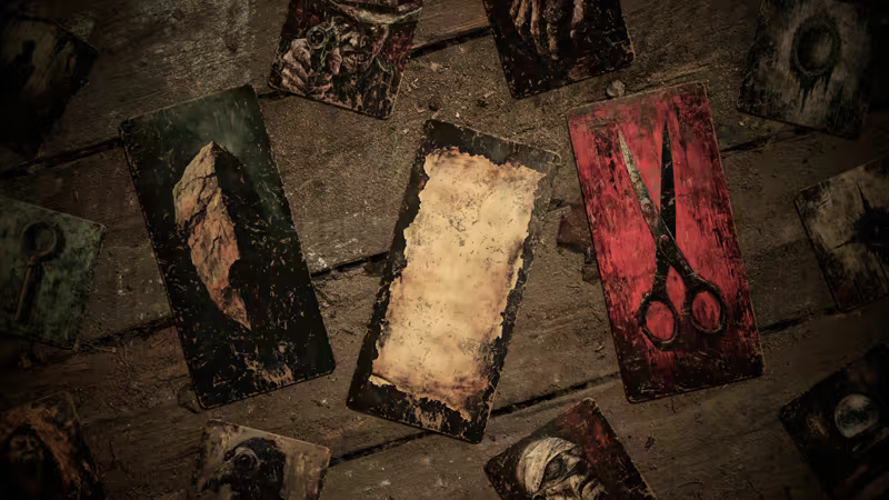 Desecrated Deck is a dark card game based on occultism which is supposed to fulfill wishes or bring death. The winner is the player who wins 3 turns of Rock, Paper or Scissors and summons the correct Item and Perk cards...