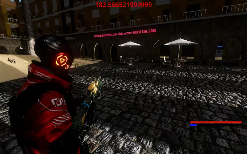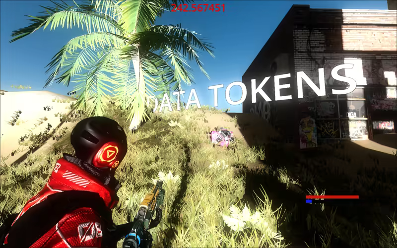 The dream is an open world third person shooter, set in a simulation of postapocaliptic Barcelona (2033) where players have to survive and farm data tokens . Use your pulse gun to fight against enemy AI, use your sprinting to avoid being caught by the mobs. The more you survive the more data tokens you win for the leaderboard, leaderboard in