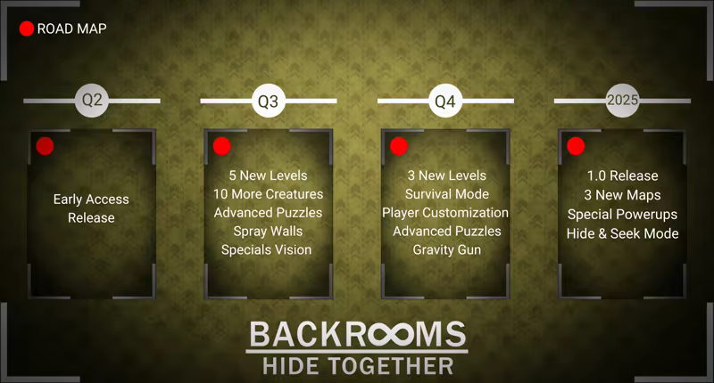 Survival demands strategy, stealth, and nerves of steel. Stay close to your team or risk being lost forever. The Backrooms don't care how many survive.