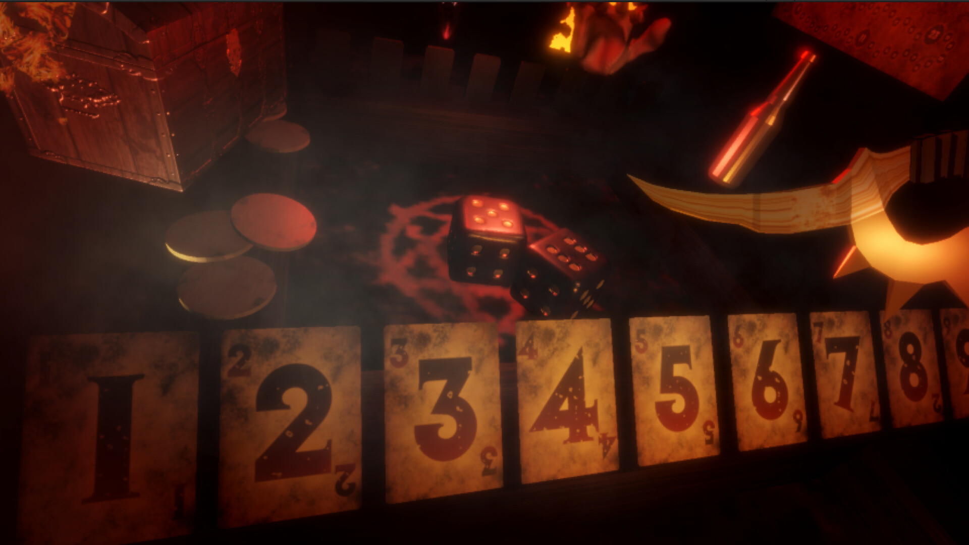 In Basement 66, the classic dice game becomes a life-or-death duel. You and the Devil take turns playing a cursed version of “Shut the Box.” Every number shut pushes you forward on the board. The catch? If you reach the 66th field before the Devil does… you die.