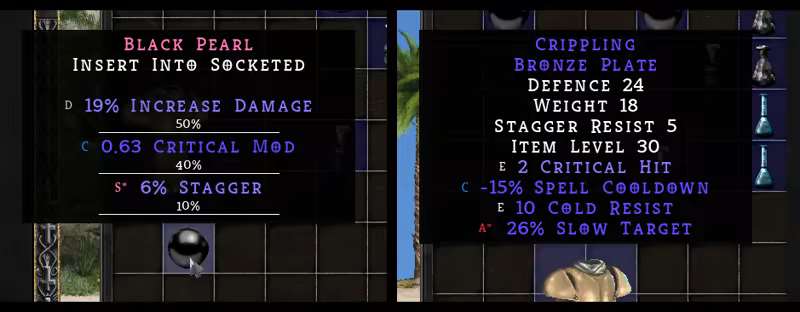 Socket gear with Pearls, mutated relics containing three potential stats.