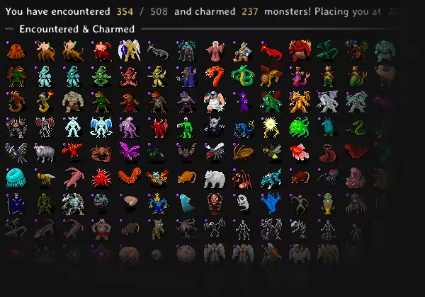All the monster you encounter or charm will be tracked in your bestiary. Will you be able to charm them all?