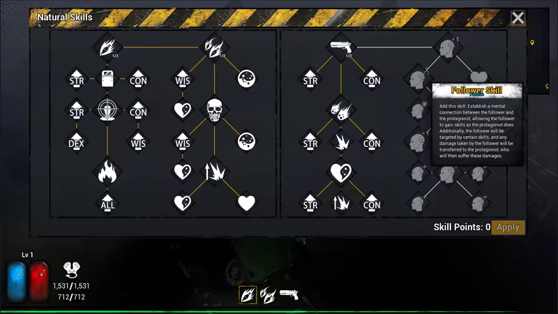 5. Each character can fill up their talent tree. Talent points are earned from completing tasks, killing zombies, collecting boxes, and purchasing items. The talents of different characters will vary slightly.