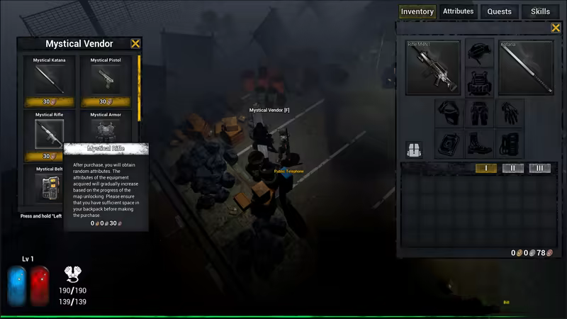 1. Players can purchase equipment with random attributes through a mysterious figure. The quality of the equipment improves as the difficulty level of the game is increased. With sufficient currency, players can obtain better equipment, which gradually helps to enhance their progress in clearing levels.
