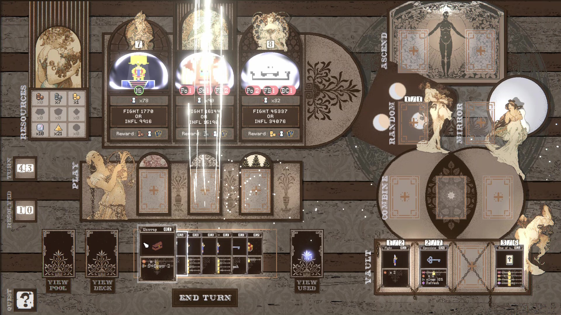 You control what's in your deck: Add or remove Cards from the Card Pool, from which a random card is added to your Deck each turn. Don't like a card or no longer need it? Place it in the Randomiser to change it to something more useful (hopefully). And many more ways to get cards with card effects that you want, and remove those that you don't.