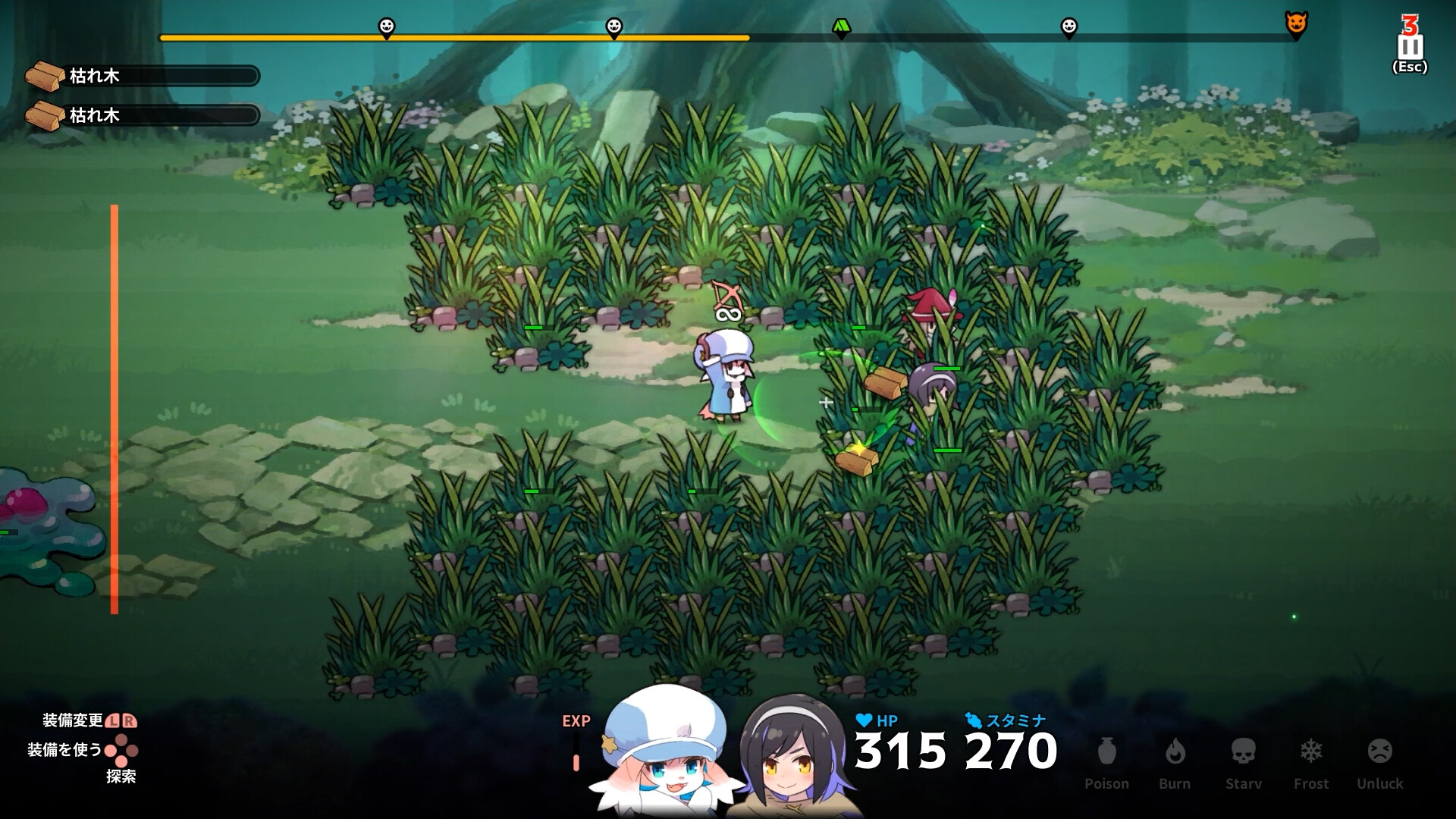 Everything is an ingredient for Lop, from the plants she collects to the corpses of demons she dismembers. By cooking them while camping, they can be turned into sumptuous dishes. Cooking has various effects such as curing poisons and increasing attack power, so you need to judge the composition of the dungeon and serve appropriate dishes.