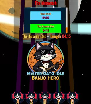 Mister Gato Idle is an idle and incremental game where you can also play other minigames to boost your resources. Follow Mister Gato, a tuxedo cat who plays a banjo as he is sent on a quest to find "The Mew Sound" and become the next Meowsiah.