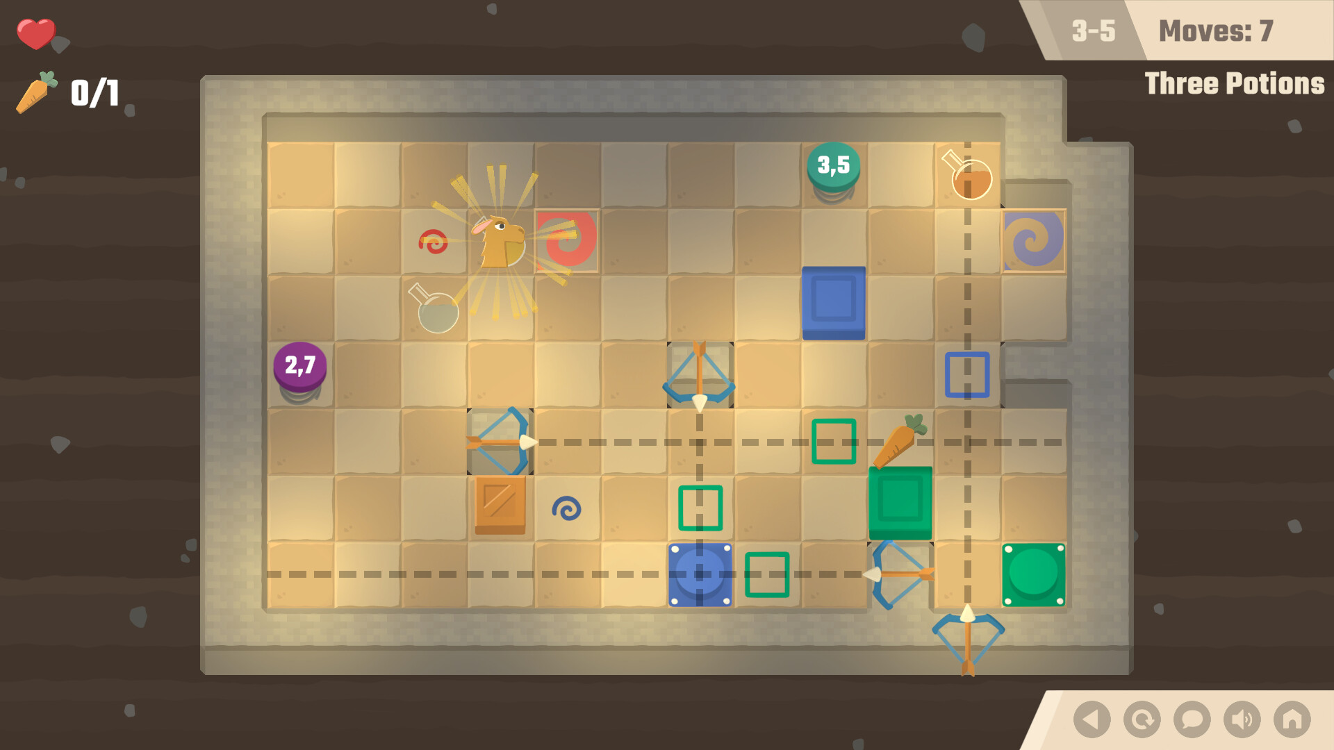 Want some different experience? Behold, boss fights! In boss levels, you don't have to carefully come up with a solution to a puzzle. What you have to do is dodge the boss's rapid attacks, and grab carrots to strike back!