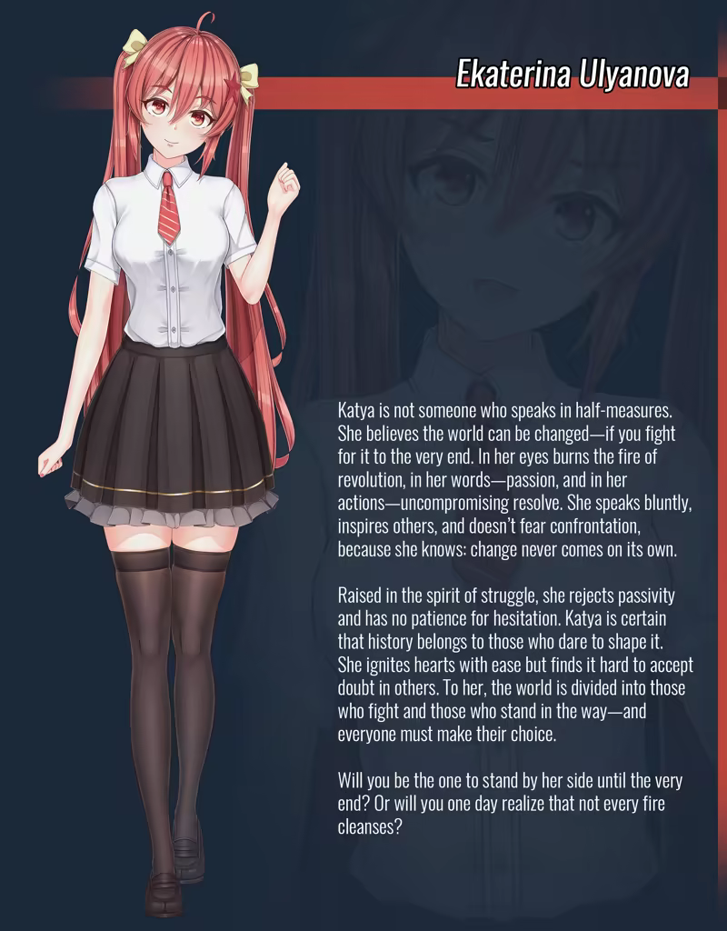 Katya – A fiery communarist, believing in the power of the people and radical change.
