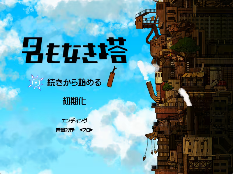``The Untitled Tower'' is an action game in which the main character struggles to save a princess who is imprisoned at the top of a tower by a demon.