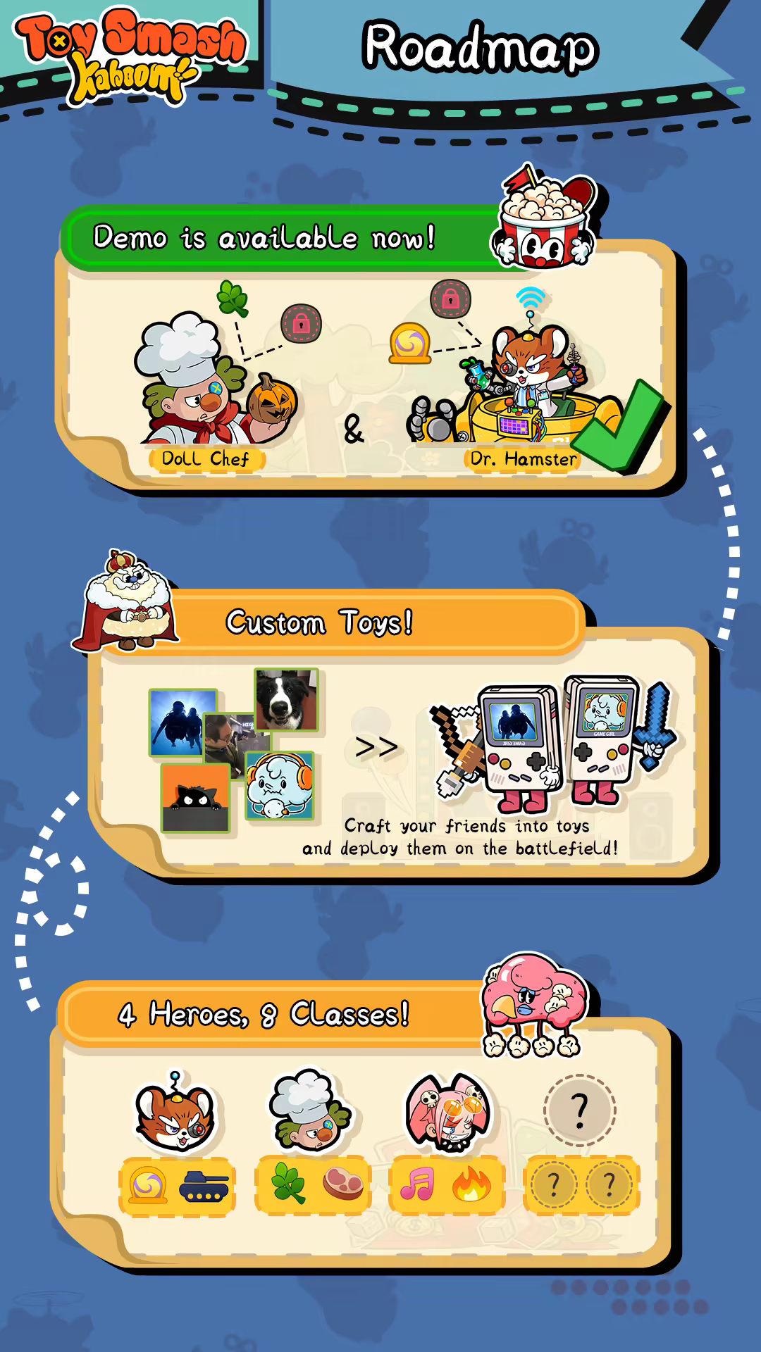 Enter a chaotic toy world where you’re the commander - manage your investory, evolve your toys, and set traps to build your ultimate Kaboom Legion!