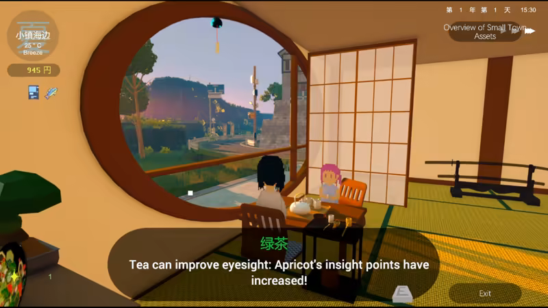 Enjoy a cup of green tea every day to enhance your character's insight points! Insight points can be used to observe potential development opportunities in small towns and establish new buildings!