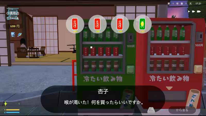 In the game, need to pay attention to your physical strength and thirst level, which can be supplemented by consuming food and drinks. Otherwise, you can only go home early to rest!