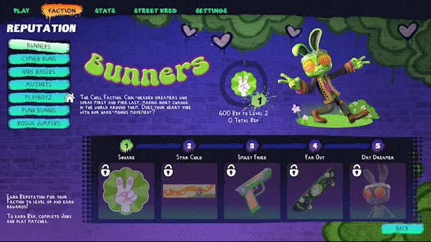 Pledge allegiance to one of seven factions, from the athletic Rogue Jumpers to the bionic Cypherbuns. Raise the ranks and unlock unique perks to aid you in your battle for control over Hooliland City.
