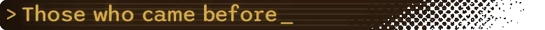 You know nothing of this. Your eyes have never seen these long dead founders, and your feet have never known the soil of Earth or any other planet. Your world is one of cold steel bulkheads, winding jungle corridors, and the groan of unfamiliar machinery. You are alone.