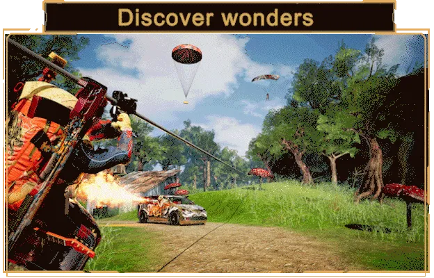 Touch down, detach, and gear up—your fight begins. Hunt for weapons, armor, and supplies… or claim the rooftops and dominate with a sniper rifle and a long-range scope. Every rooftop is a battleground, every structure a potential advantage.