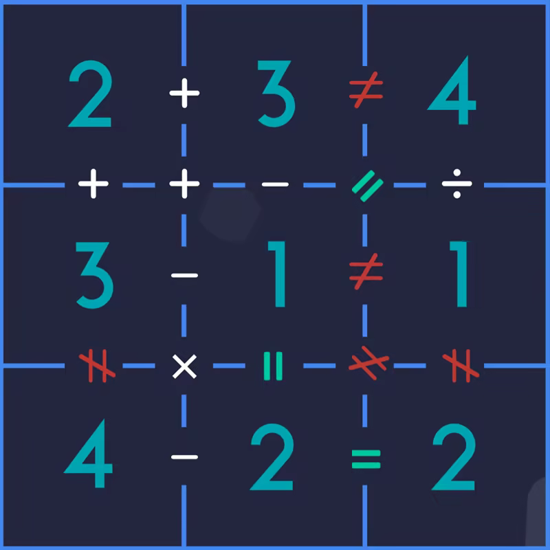 Equate 8 is an innovative and addicting new math puzzle game by the creator of The Devil's Calculator. Rearrange numbers in a 3x3 grid to solve eight equations (3 across, 3 down, and 2 diagonal) in the fewest moves possible. Challenges involve a variety of operators and difficulty levels. The game tallies your moves -- go for the gold!
