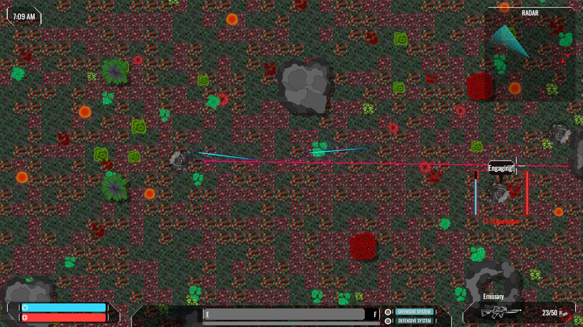 Locations are procedurally generated; exploring the same location provides a different experience each time, with each one having its own unique aspects and threats. Eventually, you'll come to realize that surface of the planet has a lot more than meets the eye; if you live long enough, then perhaps you can check to see if the rumours of alien ruins on the planet hold any weight.