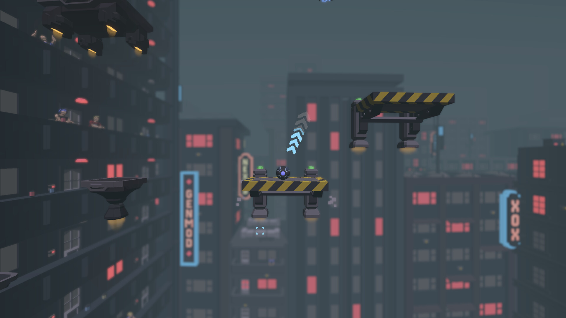You are placed in a Cyberpunk sprawl with multiple city levels, factories and more. You will climb up through the cities on race platforms perfectly placed so every jump is possible but also ragefully hard.