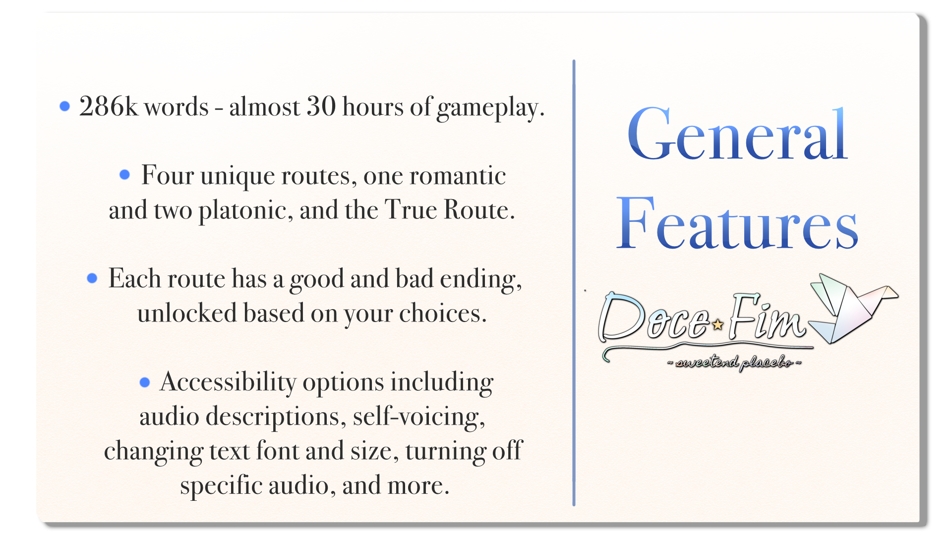 • Four unique routes, one romantic and two platonic, and the True Route.